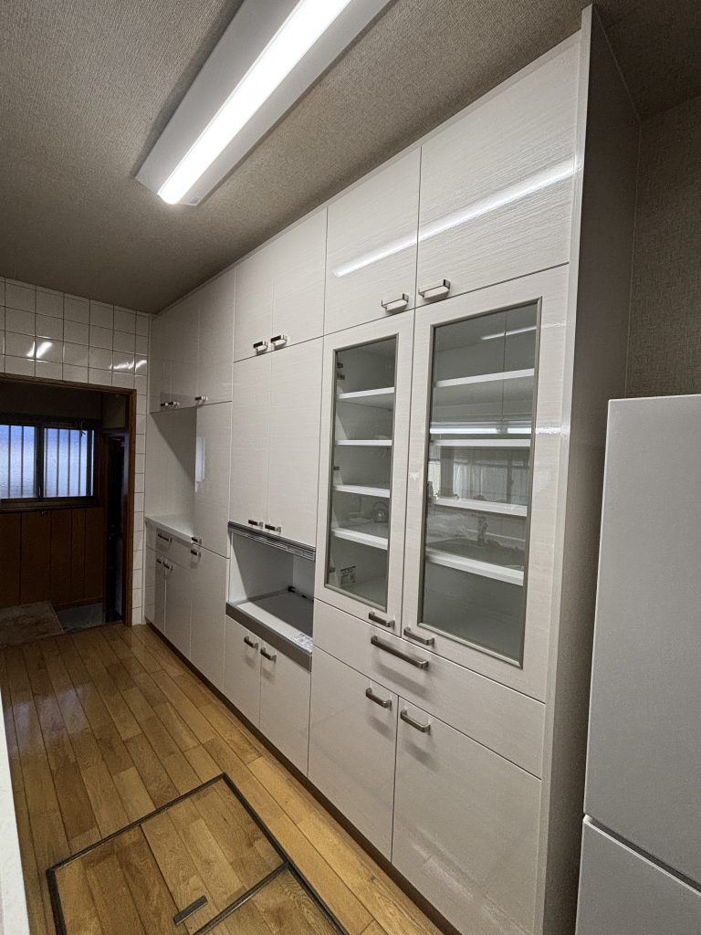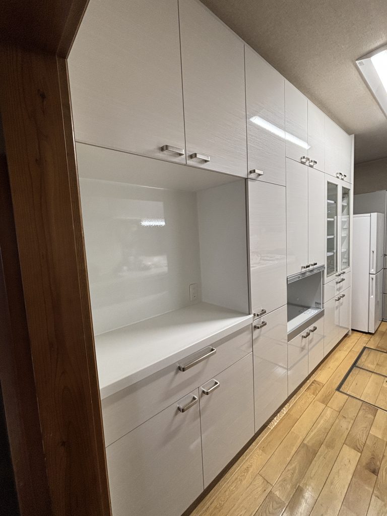 今までの収納も使い勝手はよかったが、今回新たに冷凍庫をご購入させるにあたって、幅の小さなものをご要望されていたので、今回はパナソニックさんの背面収納をご提案させて頂き工事をさせて頂きました!